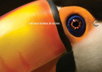 Une campagne de l'IUCN qui seulement avec les yeux d'animaux arrive à nous interpeller, le message "Si nous construisons trop, nous détruisons"