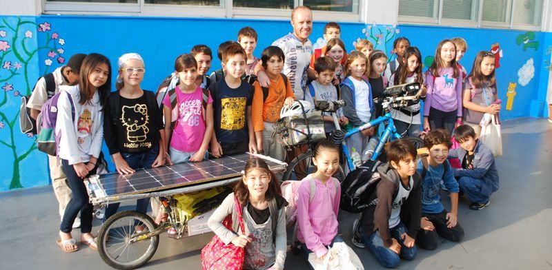 Pourquoi faut-il que se soit sur un site américain que j’apprenne ce genre d’info !! Soit je ne lis pas les bons sites (dans ce cas les amis manifestez vous …) soit en France on est à côté ! Ou on en a déjà parlé et vu que ça vient de se terminer … Donc Florian Bailly a parcouru 13 000 km (paye tes mollets mon gars) traversé 11 pays (je te les énumère : France, Italie, Slovénie, Croatie, Serbie, Roumanie, Ukraine, Russie, Karzakastan, Kirghizistan, Chine et Japon), 2 continents, fait 120 km par jour (ça me paraît juste énorme) le tout sur un vélo électrique solaire …